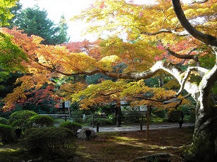 このような大自然の中で観る紅葉はもちろん素晴らしいのですが、私は建物の中から、あるいは建物を背景に「庭」として観る紅葉もとても美しいと思います。