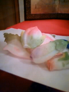 立体ですが中は空洞で、たいへん薄くデリケート。壊れないように竹の籠に盛って売られていました。指先でつつくと簡単に割れてしまいアッと思ったらもう遅く、イタズラして後悔する子供でした。