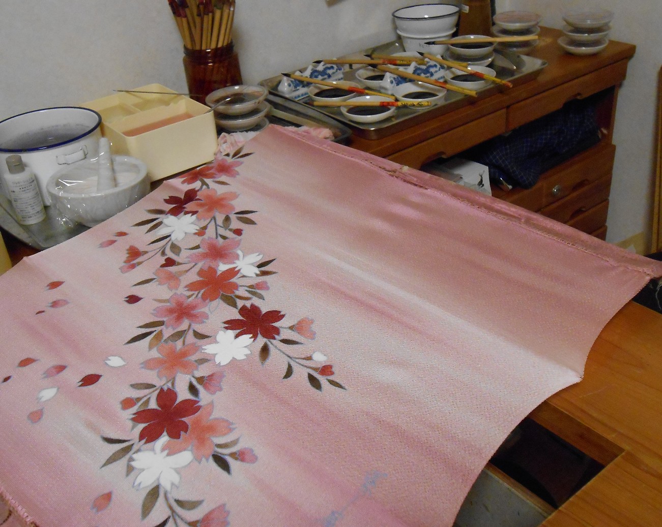 染め上がり。ピンクぼかしの背景です。