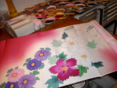 作品例の振袖をどのように染めたのか、主な染色過程をご紹介します。
